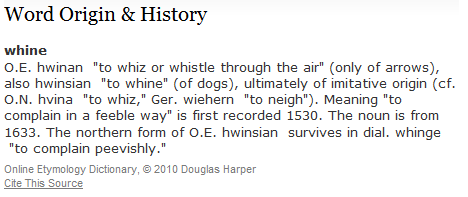 Anyways, I looked up the meaning and origins of whining and this is what I found.