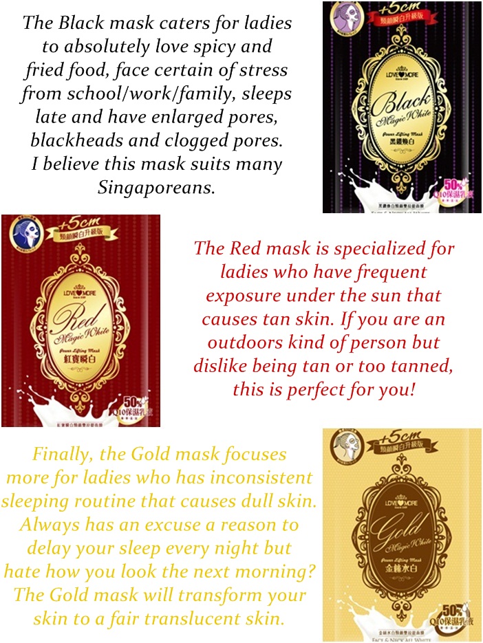 Not only that, all three masks have an additional 5cm for treatment and lifting for the neck. Yey!