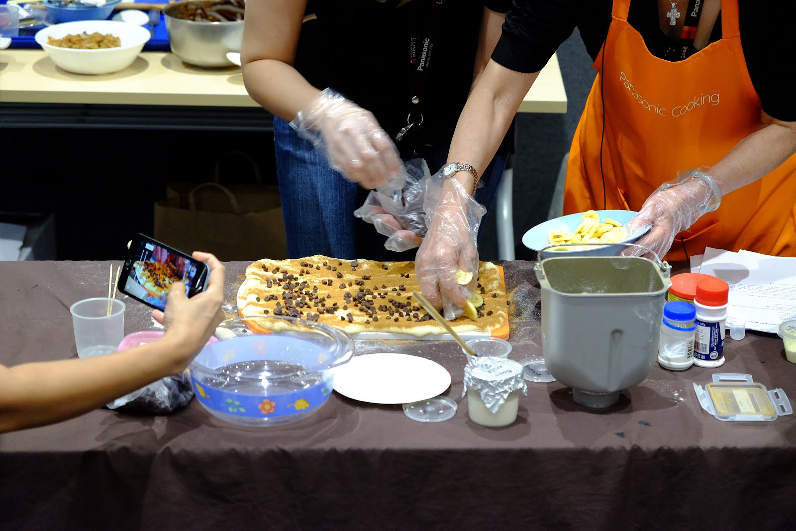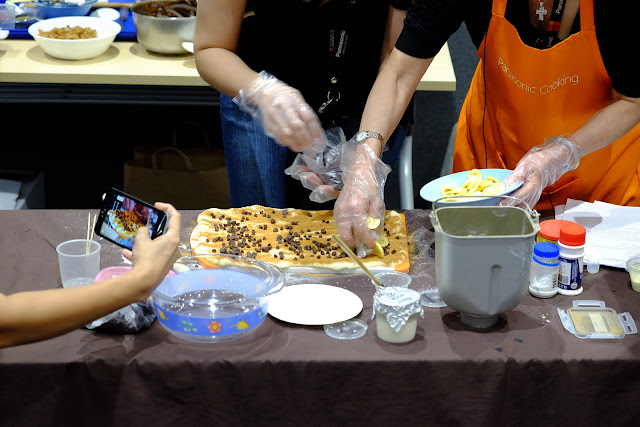 With copies of Panasonic's recipes in our hands, Mdm Theresa showed us how to bake the ever delicious Cinnamon Bun using a bread maker. I am no stranger to bread makers although I never owned one and it's pretty cool and easy since you can mix AND bake the dough with 1 appliance. Horray for less work in dish washing! The bread maker is not limited to just a variety bread but also dumpling skin dough and cakes. The specific bread maker we used (info attached to recipe) comes with a yeast and raisins & nuts dispenser. Macam washing machine with fabric softener dispenser. haha