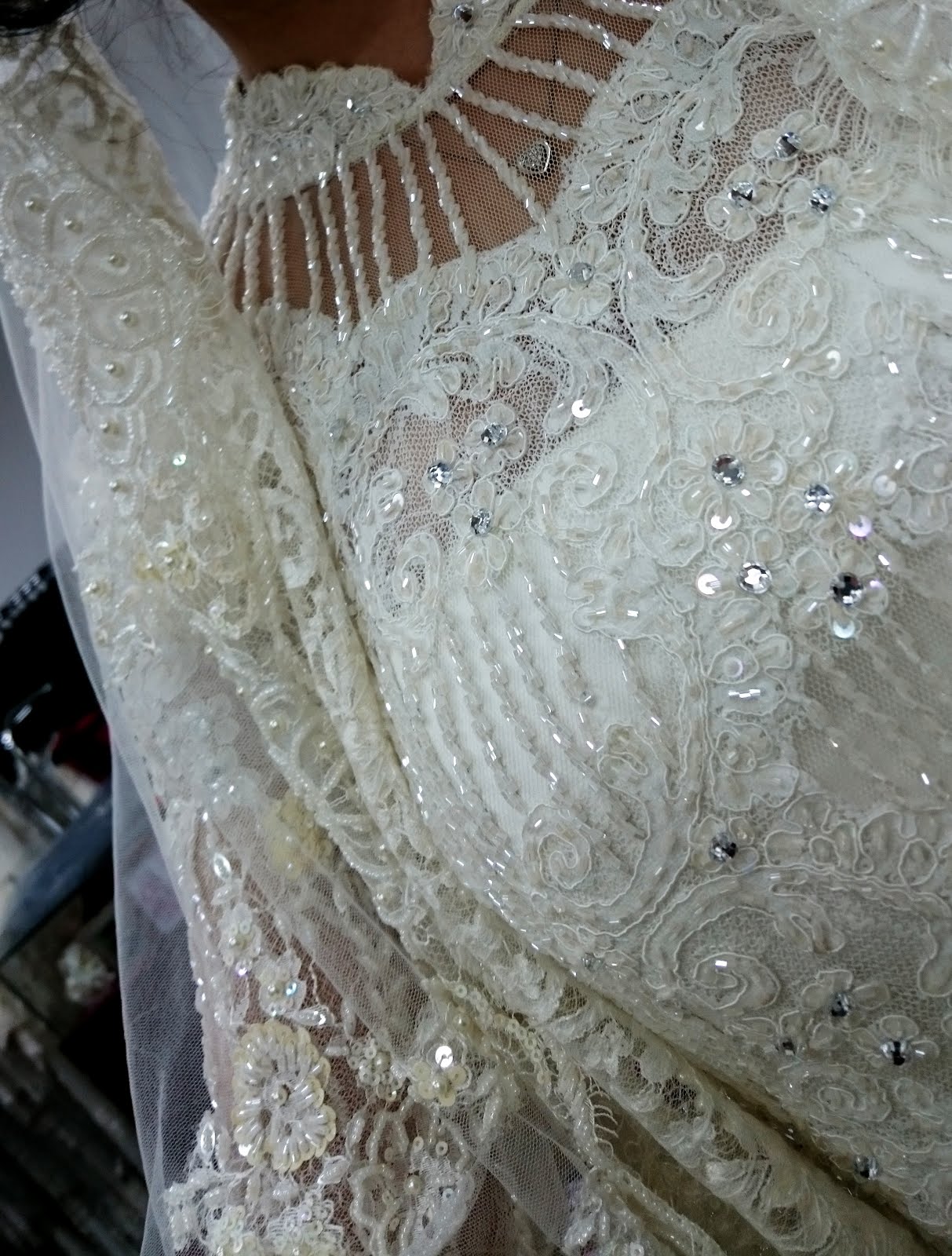 It took us almost 4 hours of me trying maybe 20 outfits just to choose 7. (Jhon only had to try the ones paired to the final chosen outfit). Abg Hadi would handle Jhon if there's a need for altering while Kak Ida and another seamstress helped with mine. Since Abg Hadi was there, multi-tasking with his sewing and sequin-ing, he also gave some input and advice which we appreciated.