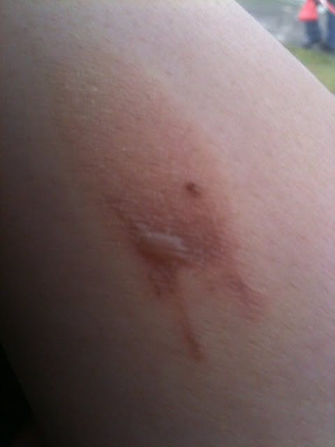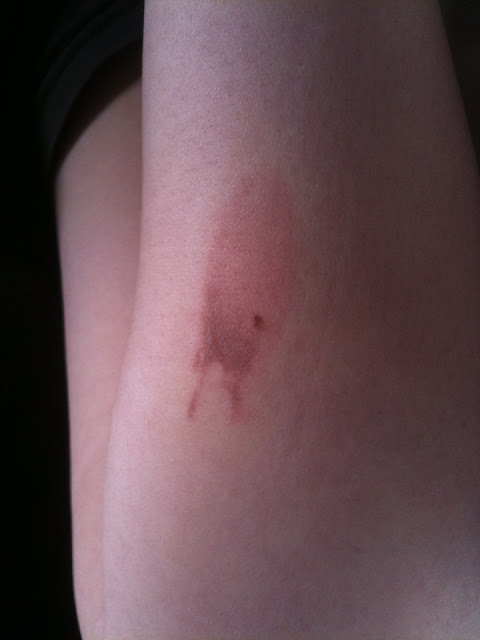 Luckily Jhon helped me by massaging the spots with ointment so now it's not that gross. It's mild brown with tolerable random itching.